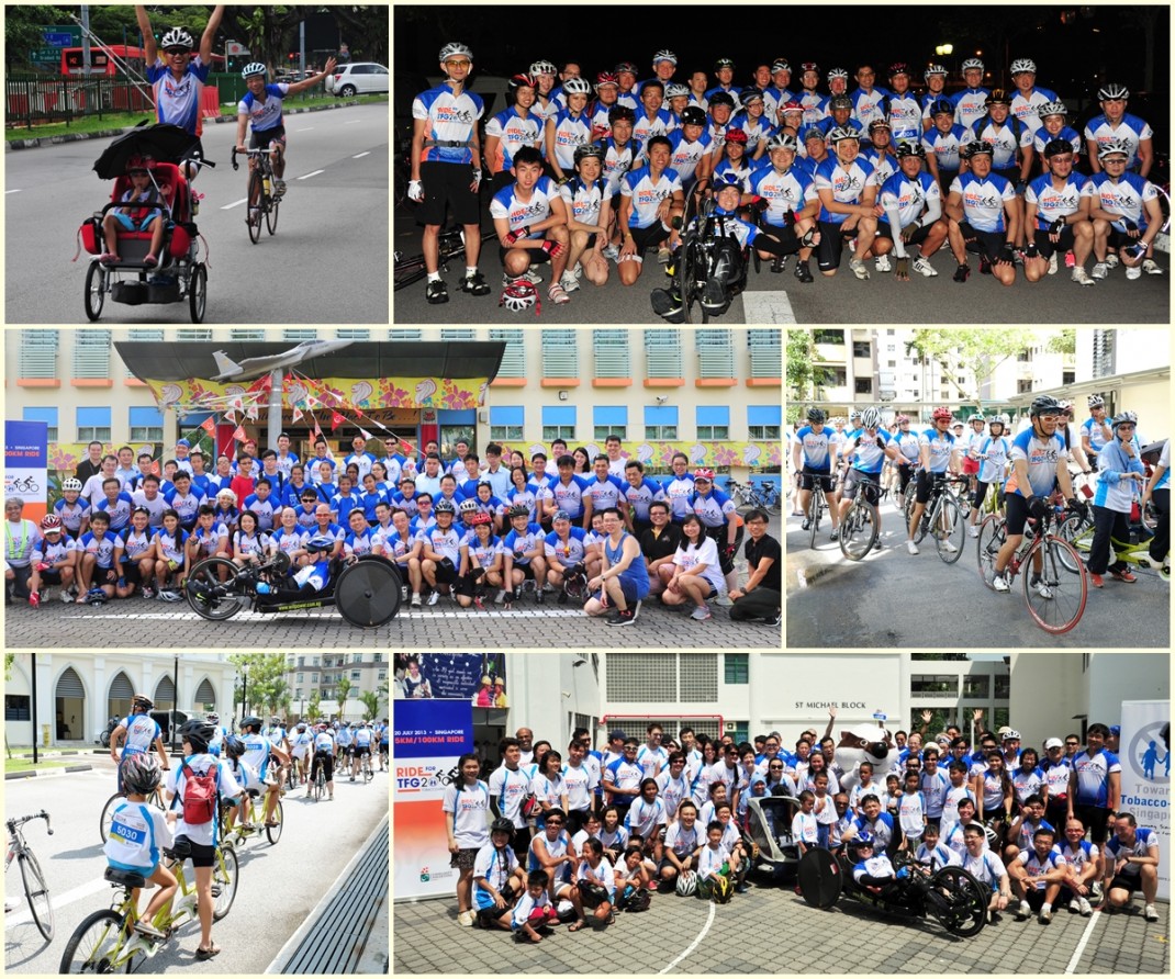 Ride for TFG2000 2013 – a ride to showcase support and encouragement for the tobacco free generation. 50 inaugural cyclists including doctors, medical students, teachers and members of the public cycled 100km through the streets of Singapore to spread the message. In the last 5 km, the riders were joined by 70 parent-child combination cyclists led by Singapore’s Member of Parliament Dr Janil Puthucheary. The route included stopping at 2 schools.