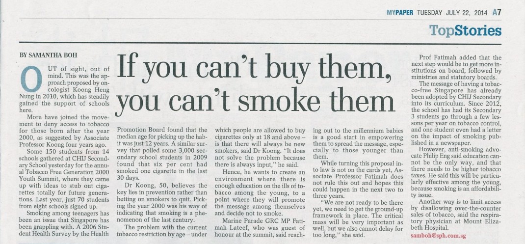 2014 Youth Summit reported in local newspapers 11 years ago Two local newspapers, The Straits Times and My Paper covered our 2014 Youth Summit. Previous post3rd Annual Youth Summit 2014 Next post2nd Annual Ride for Tobacco Free Generation About author View all posts TFG