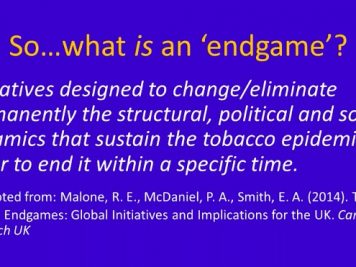 Endgame initiatives are designed to change/eliminate permanently the structural, political and social dynamics that sustain the tobacco epidemic, in order to achieve within a specific time an...